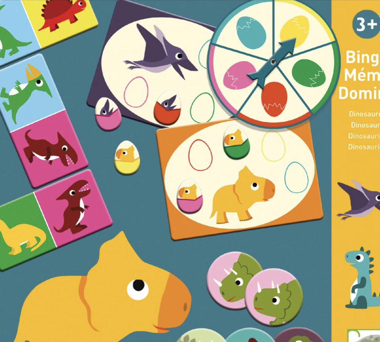 Krásná sada her pro děti od 3let. Zahrajte si pexeso, domino nebo bingo s oblíbenými dinosaury.