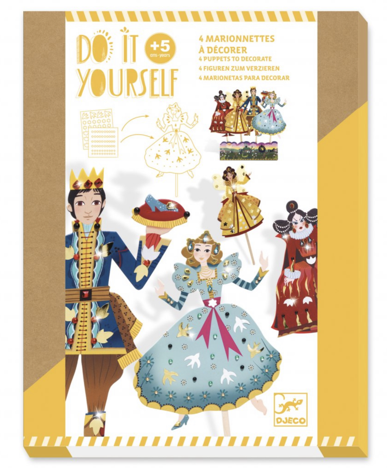 Dotvořte krásné papírové loutky s tématikou Popelky. Děti mohou loutky dozdobit pomocí samolepících kamínků a drahokamů. Vystavte si loutky na přiloženém papírovém stojánku. Uspořádáte divadlo pro celou rodinu?