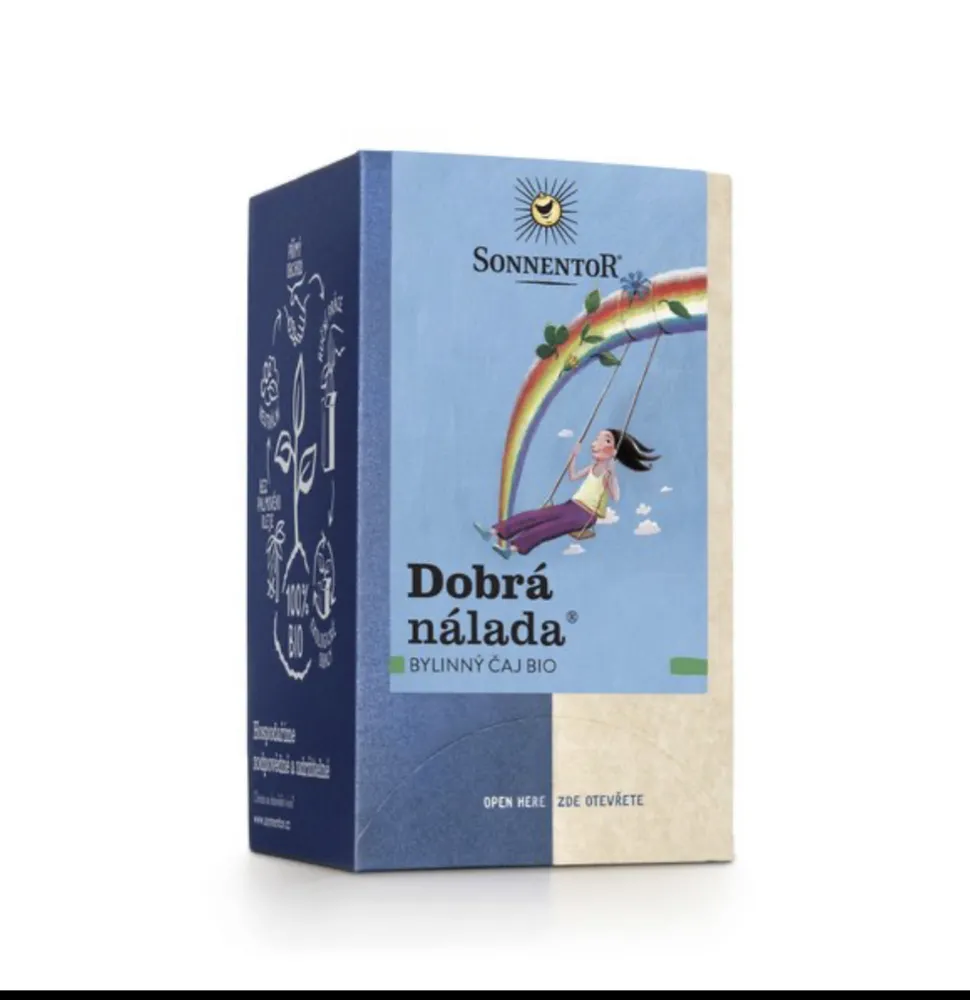 Dobrá nálada je nejstarší a možná nejoblíbenější bylinnou čajovou směsí Sonnentoru. Je v ní to nejlepší, co bylinky našeho kraje nabízejí, a chutná jak dospělým, tak dětem. Když si do čaje přidáte pár kapek citronu, vykouzlíte vynikající čajovou specialitu pro každou příležitost. S oblibou se říká, že dobrá nálada se šíří rychle a s tímto čajem určitě vykouzlíte úsměv na tváři.