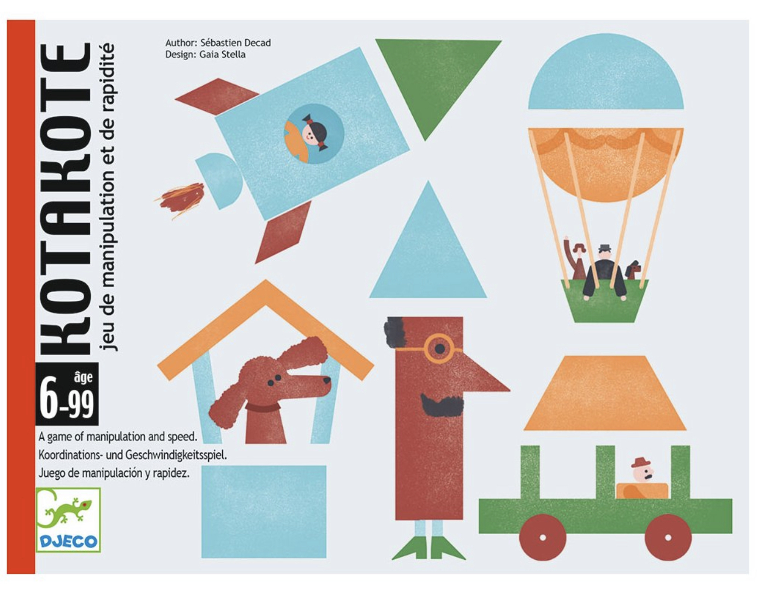 Karetní hra, kde si děti procvičí prostorové vnímání a geometrické tvary. Kdo první najde část geometrického tvaru, který odpovídá příslušnému tvaru na své kartě? Balení obsahuje 54 karet, je určen pro 2 -6 hráčů ve věku 6 - 99 let. Délka jedné hry je 15 minut. Velikost balení je 15,6 x 11,7 x 2,8 cm.