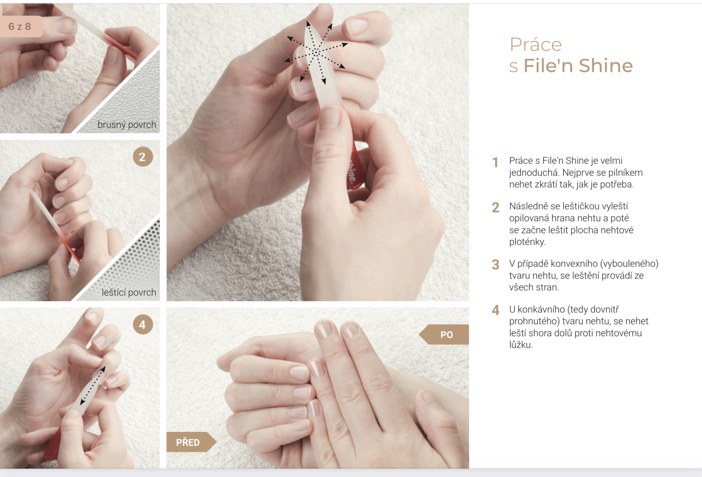 1 Práce s leštičkou je velmi jednoduchá. Nejprve se pilníkem nehet zkrátí tak, jak je potřeba.