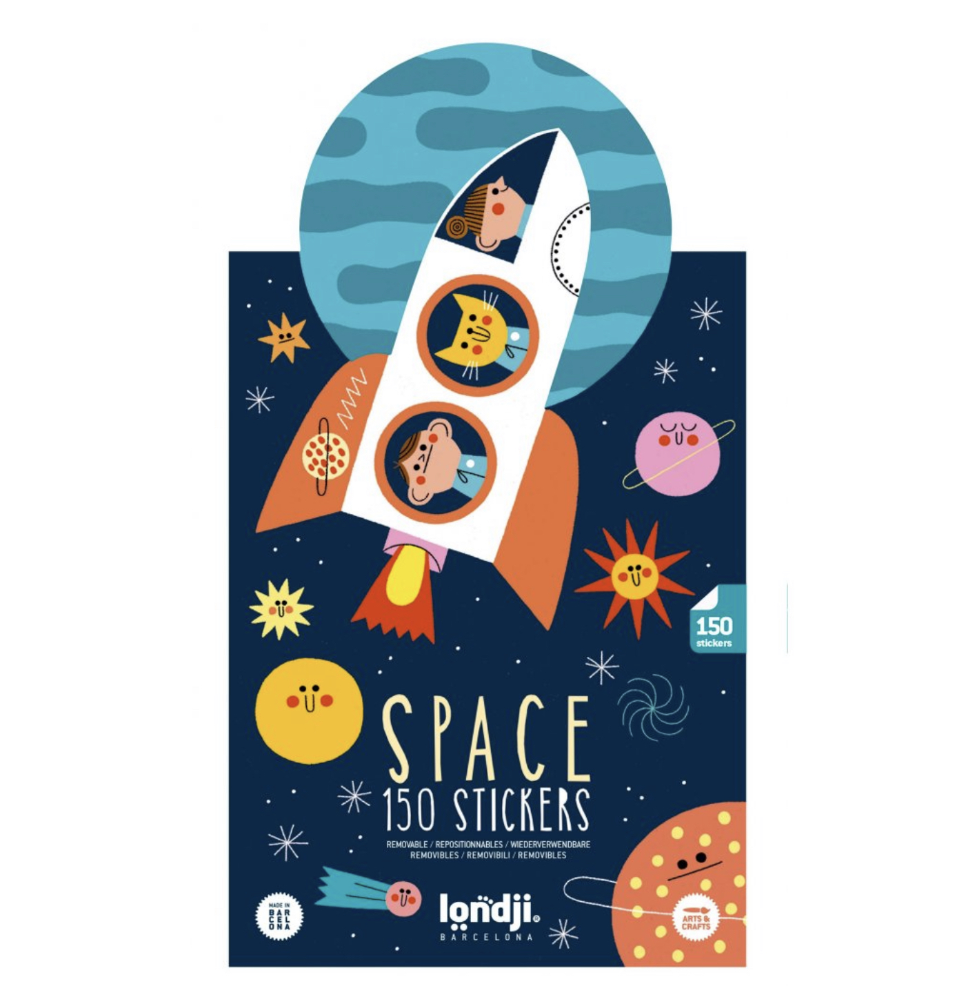 150 snímatelných samolepek s motivy hvězd, komet, astronautů a raketoplánů, díky kterým můžete vytvořit svůj vlastní vesmír.