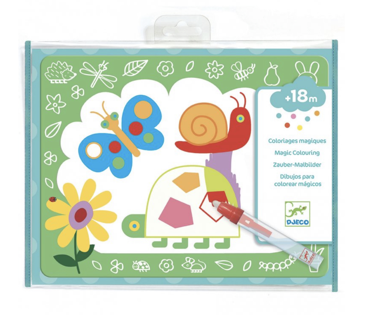 Děti pomocí tužky naplněné vodou vybarvují bílá místa zvířátek a objevují, co se pod nimi skrývá. Najednou se objevují vzory a mění se barvy - je to jako kouzlo! Jakmile stránky uschnou, zábava začíná znovu!
