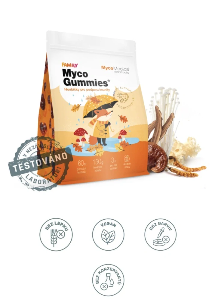 Máte rádi sladkosti, ale vyhýbáte se jim, protože svoje tělo máte ještě radši? Zkuste první gumídky s vitálními houbami v Česku. Budete mlsat bez výčitek, a navíc s každým bonbónem, co chutná po ovoci, uděláte něco pro sebe. Gumídci MycoGummies obsahují vitální houby, podporují imunitu a obranyschopnost a jsou vhodné i pro děti. Pokud se vaše ratolesti nad vitamíny ošklíbají a nechtějí je polykat, tady to bude úplně jinak. Naši MycoGummies mají totiž tvar malých houbiček, který děti bude bavit, a navíc je slupnou jako malinu. A bez cukru.