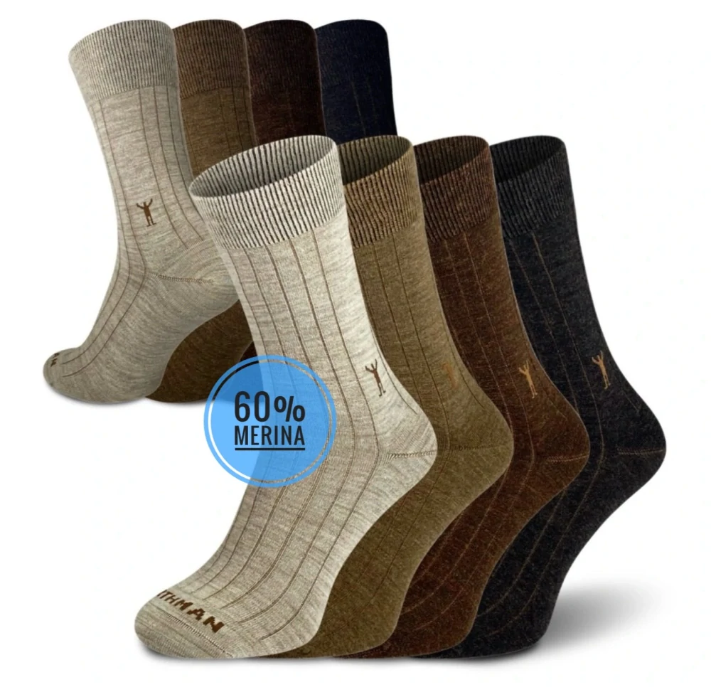 SET 4ks společenských merino ponožek české výroby, v odstínech hnědé s jemným žebrováním.