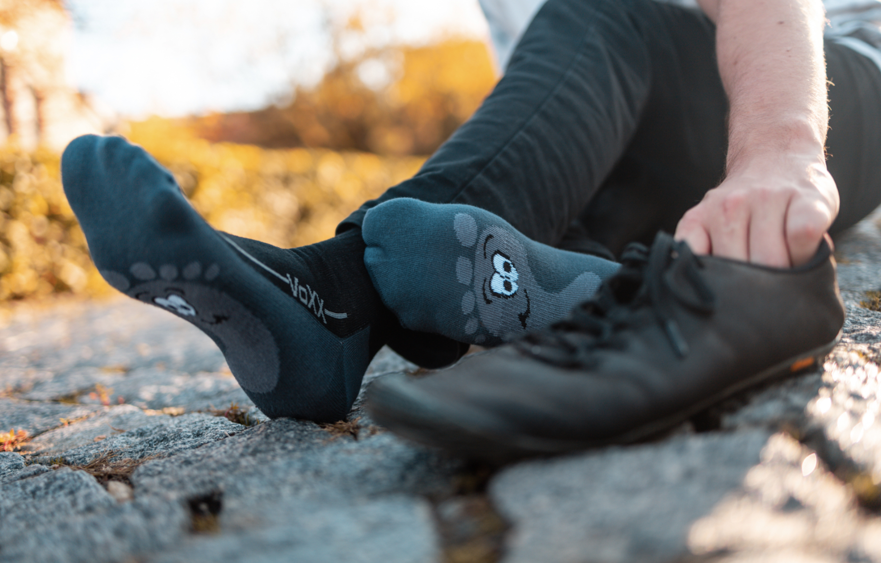 Ponožky BAREFOOTAN jsou pohodlné, slabé ponožky ze sportovní kolekce VoXX®. Mají jedinečný ergonomický tvar, který se maximálně přizpůsobí Vaší noze. Široká prstová část a anatomické tvarování na levou a pravou nohu předurčují ponožky pro nošení v barefootové obuvi! Špička ponožky je uzavřena náročnějším řetízkováním, díky kterému je spoj dokonale hladký a nehrozí, že ponožka bude tlačit. Dámské a pánské ponožky jsou v teplotní třídě A, tyto tenké ponožky můžete nosit po celý den v teplotách od +10°C do +35°C.