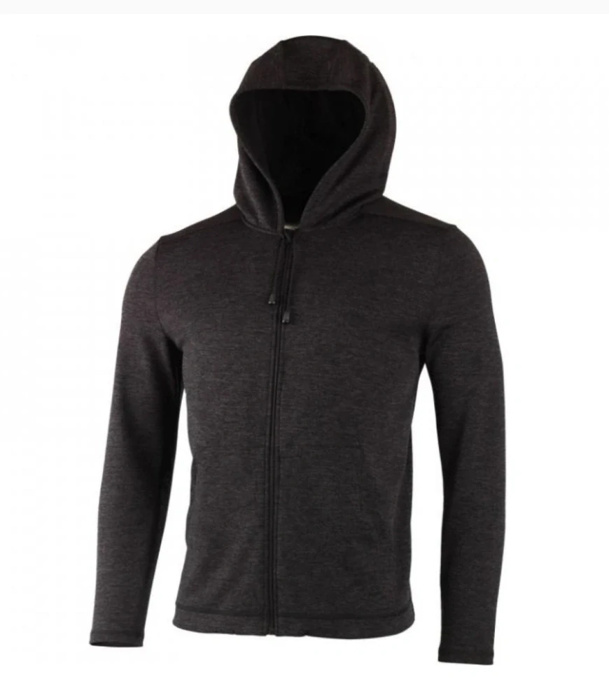 Merino mikina s kapucí na zip, kapsy, tmavě šedý melír.
